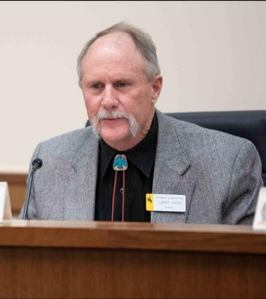 Larry S. Hicks (Republican Party) is a member of the Wyoming State Senate, representing District 11. He assumed office in 2011 and has served as state Senate majority leader since January 10, 2023. Hicks studied crop science at the University of Wyoming, earning a bachelor of science, and went on to earn an M.S. in Agronomy from Montana State University. He later returned to the University of Wyoming where he completed Ph.D. coursework in Agronomy. Hicks worked as a natural resources coordinator for the Little Snake River Conservation District.